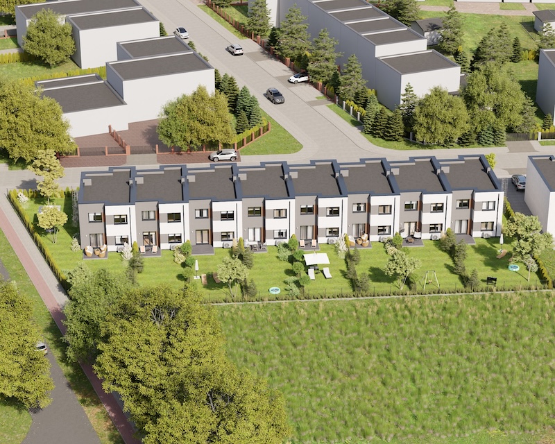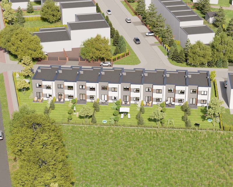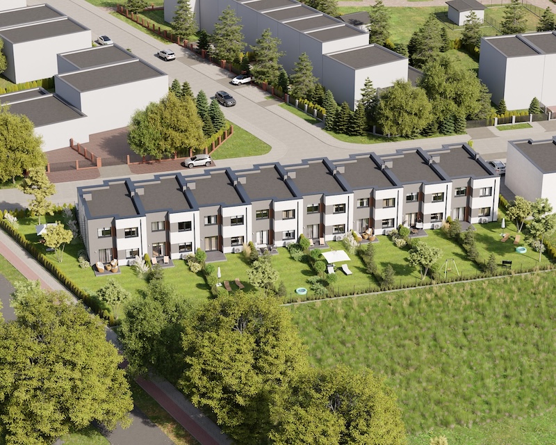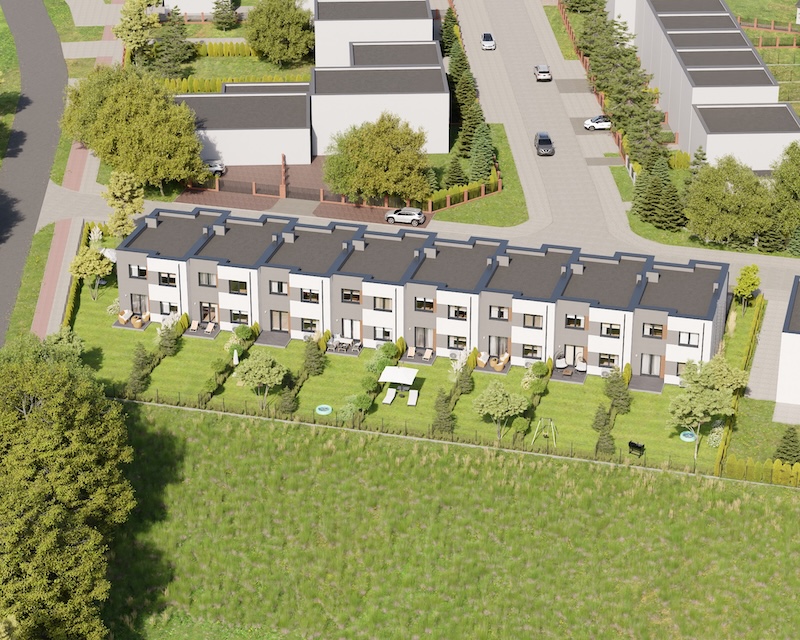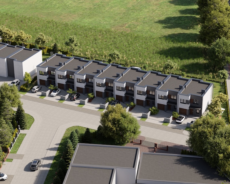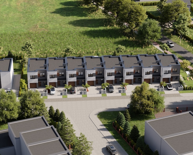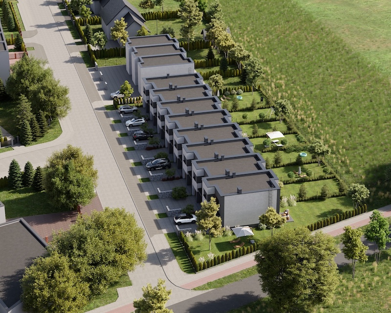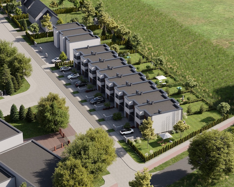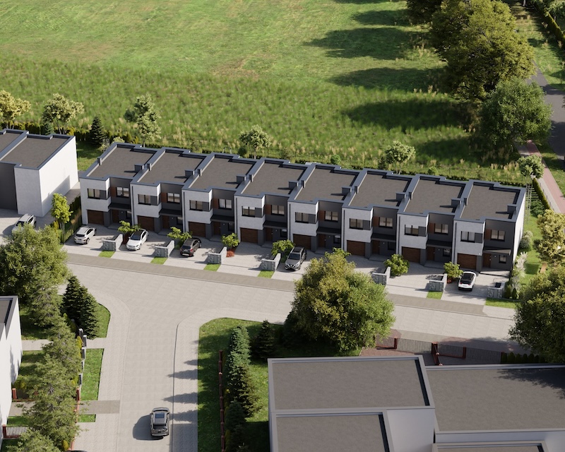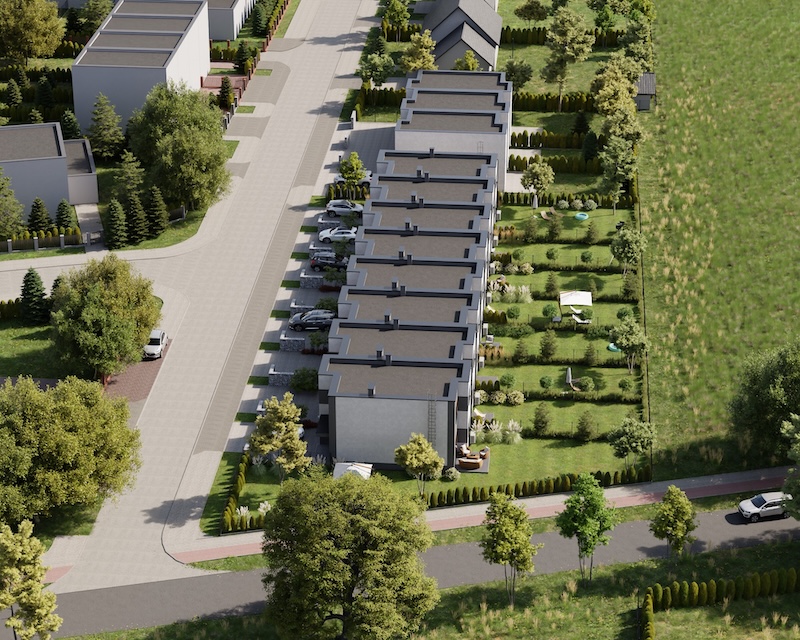 Klonowy Zakątek to nowoczesna inwestycja w zabudowie szeregowej, stworzona z myślą o tych, którzy szukają spokoju i wygody – bez rezygnacji z miejskich udogodnień. Na osiedlu powstanie zaledwie 8 domów, co gwarantuje kameralną atmosferę i poczucie prywatności. Prosta, elegancka architektura oraz funkcjonalne rozwiązania sprawiają, że to miejsce przyciąga estetyką i praktycznością. Tutaj łatwo możesz poczuć się jak u siebie już od pierwszego dnia.