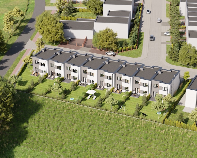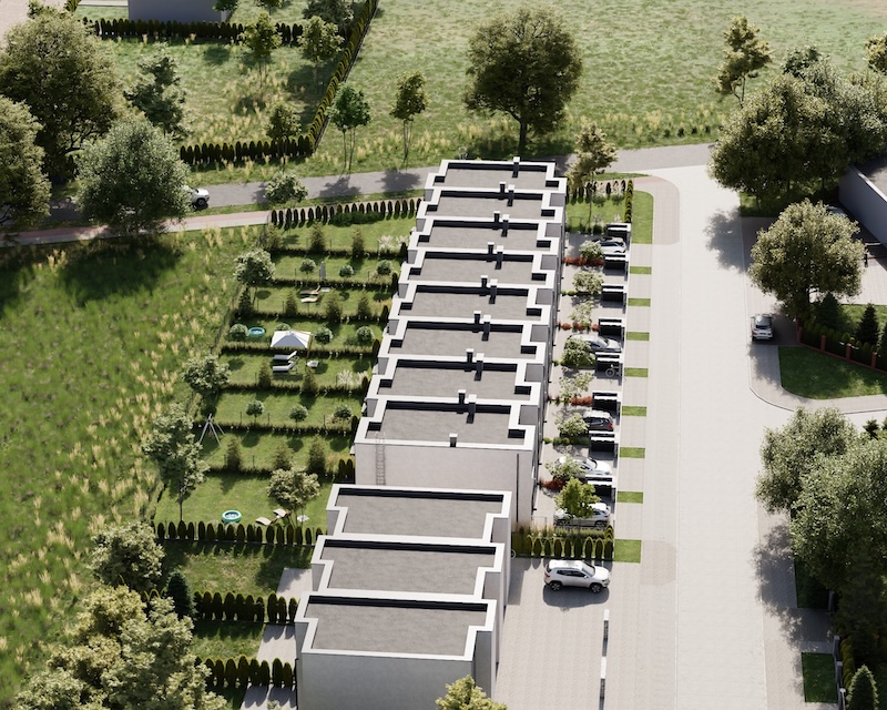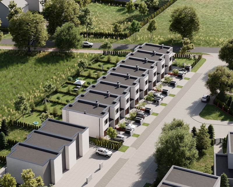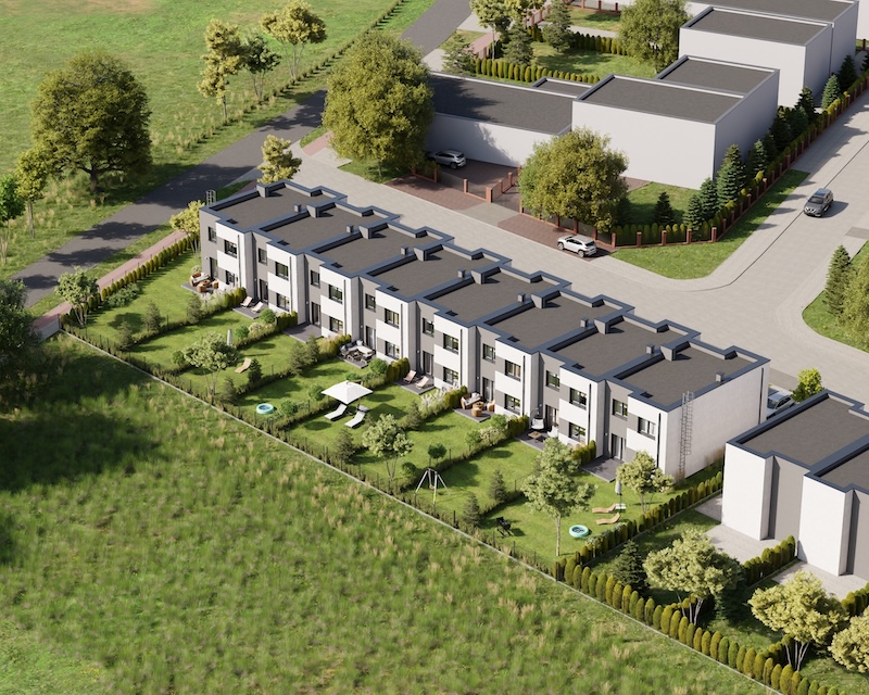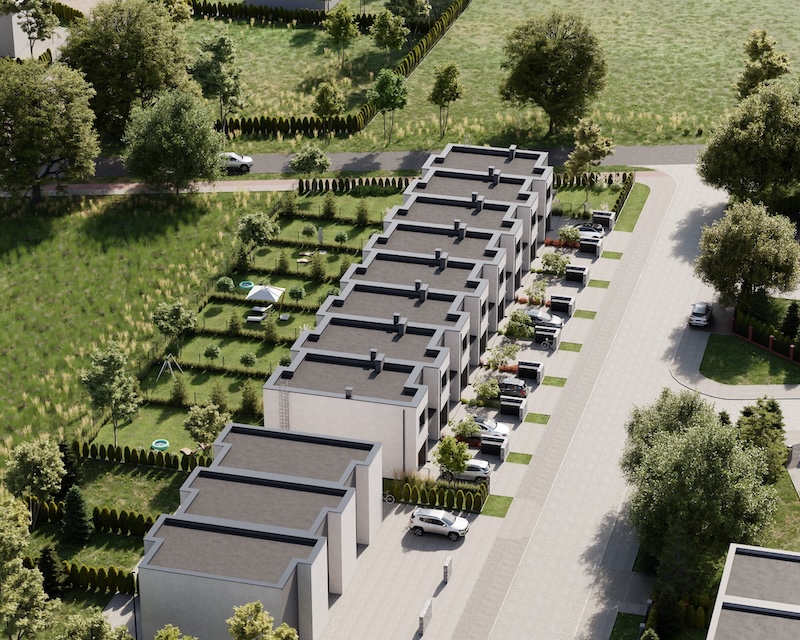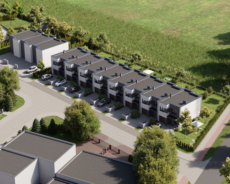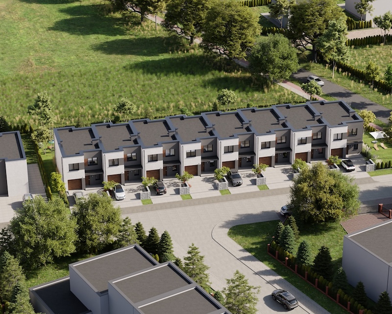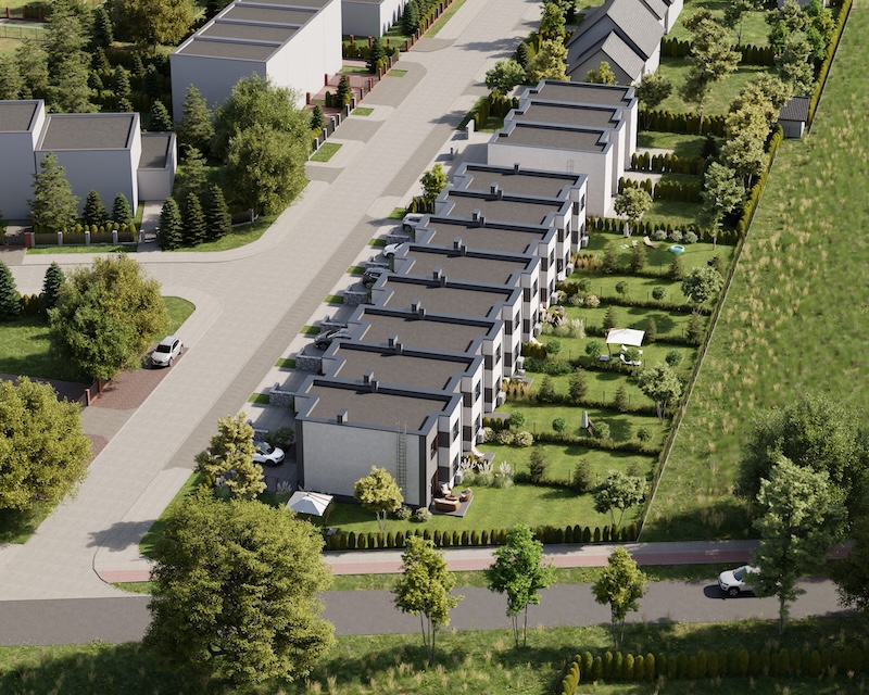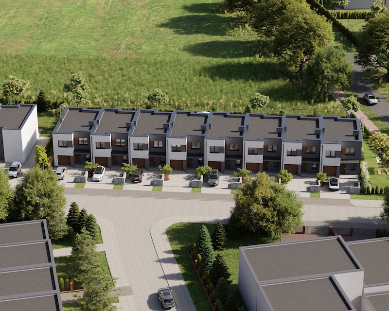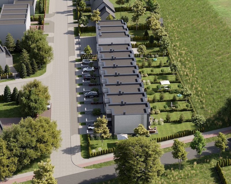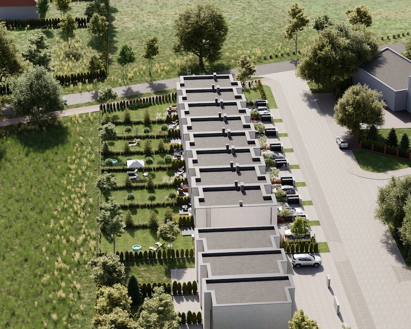 Klonowy Zakątek to nowoczesna inwestycja w zabudowie szeregowej, stworzona z myślą o tych, którzy szukają spokoju i wygody – bez rezygnacji z miejskich udogodnień. Na osiedlu powstanie zaledwie 8 domów, co gwarantuje kameralną atmosferę i poczucie prywatności. Prosta, elegancka architektura oraz funkcjonalne rozwiązania sprawiają, że to miejsce przyciąga estetyką i praktycznością. Tutaj łatwo możesz poczuć się jak u siebie już od pierwszego dnia.