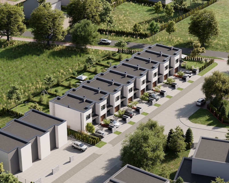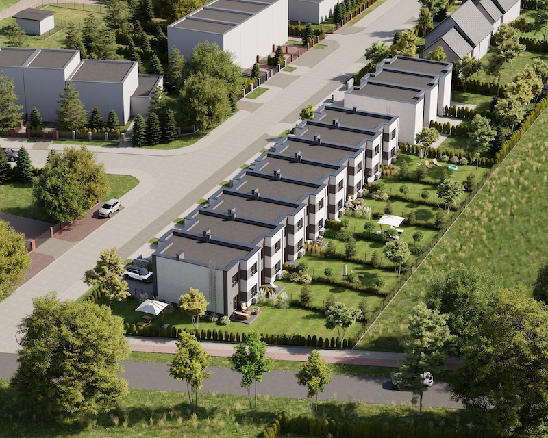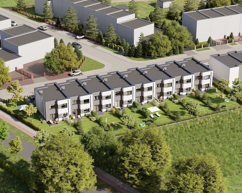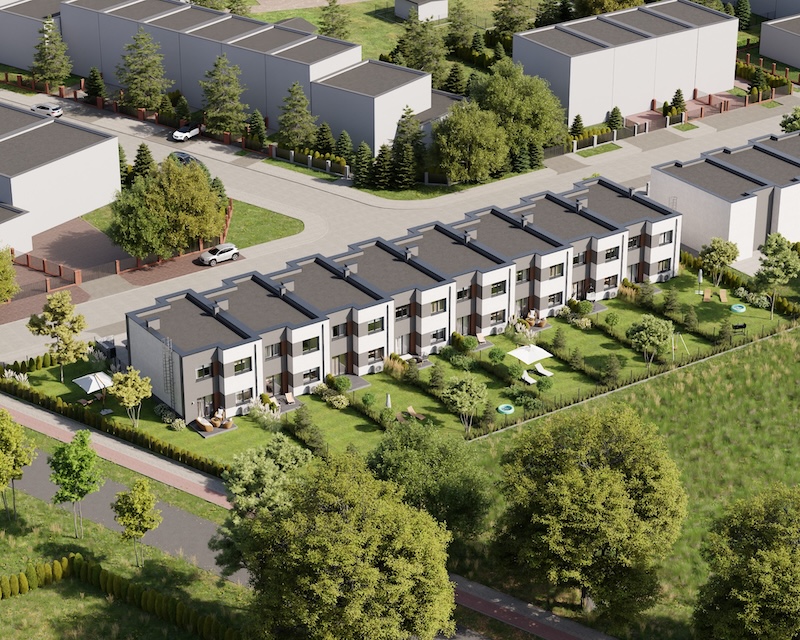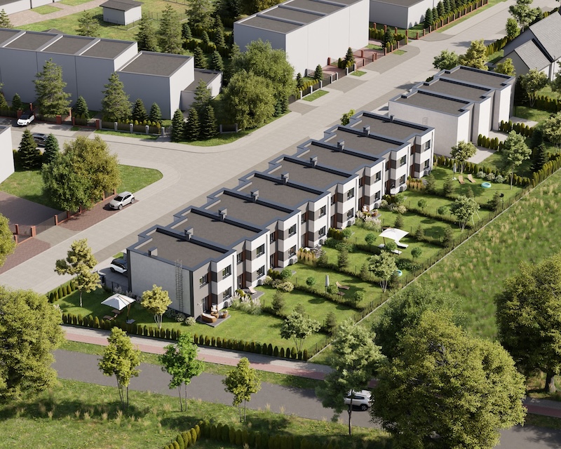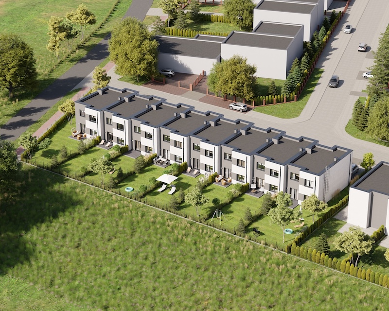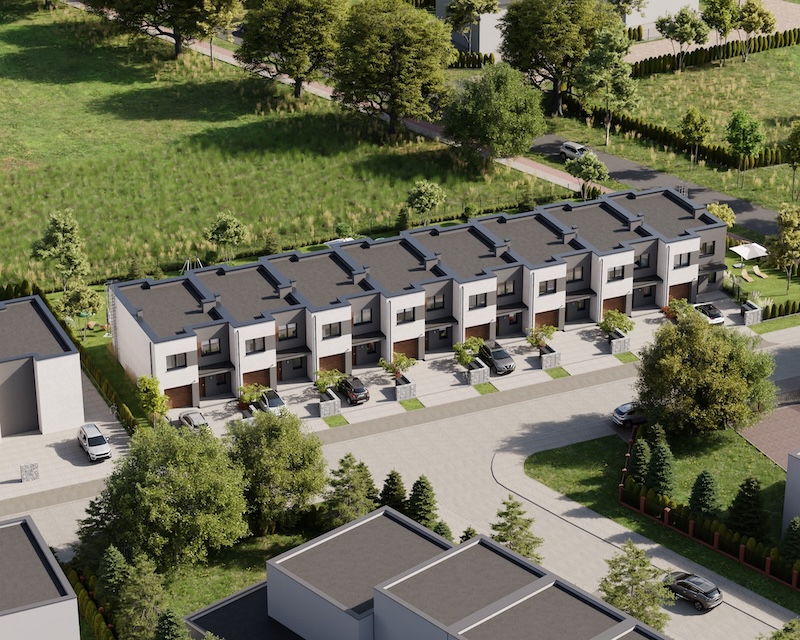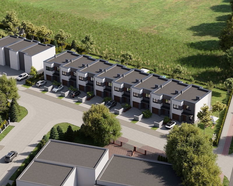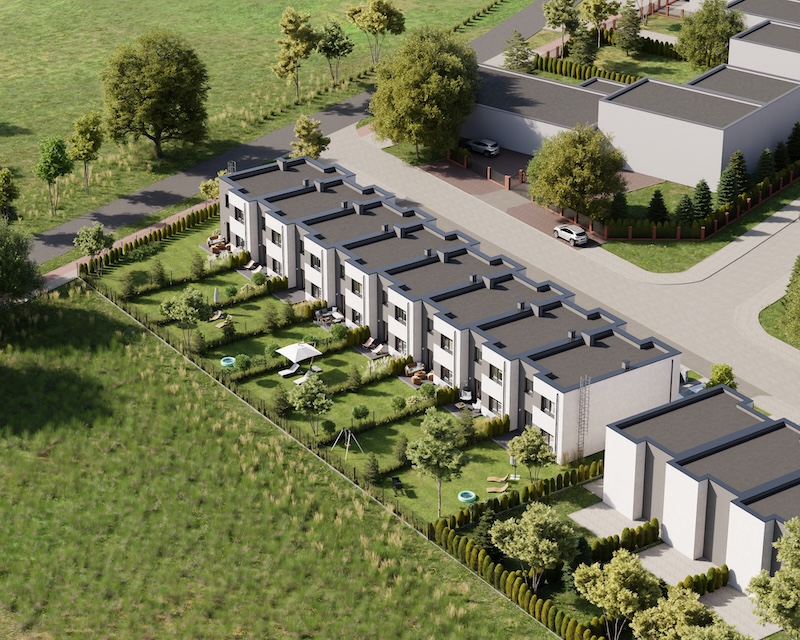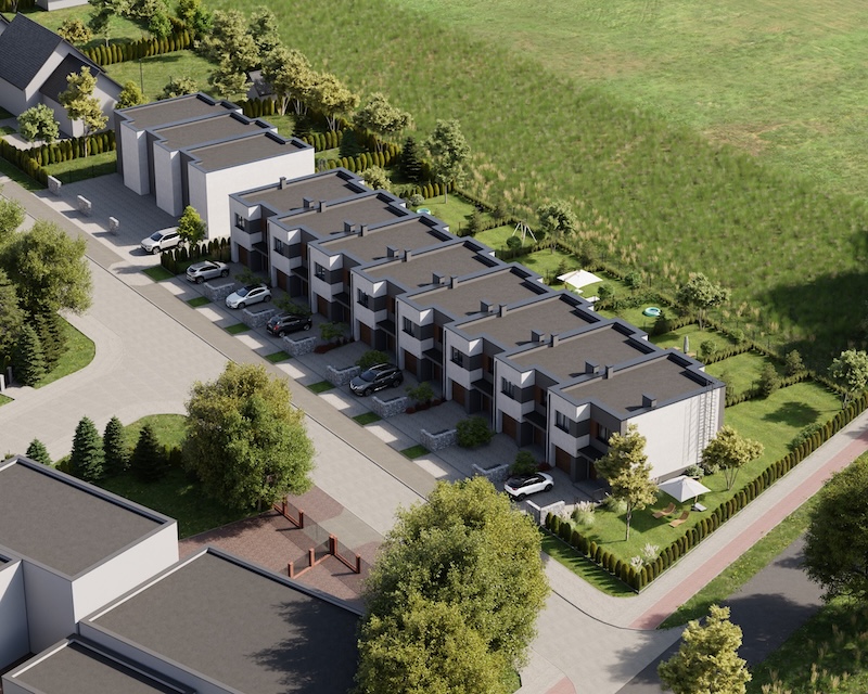 Klonowy Zakątek to nowoczesna inwestycja w zabudowie szeregowej, stworzona z myślą o tych, którzy szukają spokoju i wygody – bez rezygnacji z miejskich udogodnień. Na osiedlu powstanie zaledwie 8 domów, co gwarantuje kameralną atmosferę i poczucie prywatności. Prosta, elegancka architektura oraz funkcjonalne rozwiązania sprawiają, że to miejsce przyciąga estetyką i praktycznością. Tutaj łatwo możesz poczuć się jak u siebie już od pierwszego dnia.