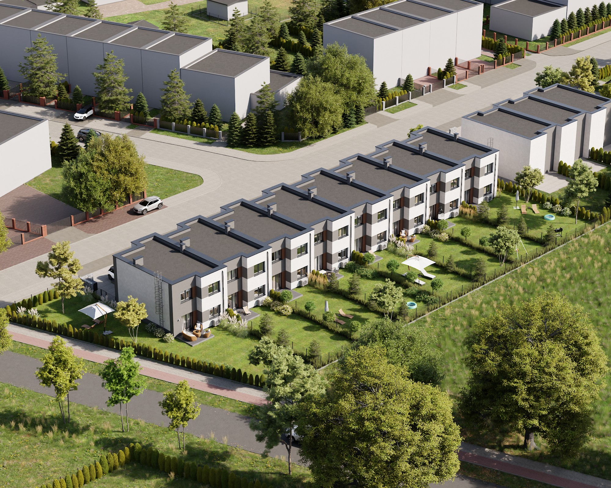 Każdy dom ma swój prywatny ogród z tarasem, idealny na poranną kawę, zabawę z dziećmi czy weekendowego grilla. To Twoja zielona strefa relaksu, do której nie musisz dojeżdżać – po prostu otwierasz drzwi i jesteś u siebie. Do dyspozycji masz też garaż i dodatkowe miejsce postojowe przed budynkiem, więc codzienne parkowanie nawet kilku pojazdów to nie problem.